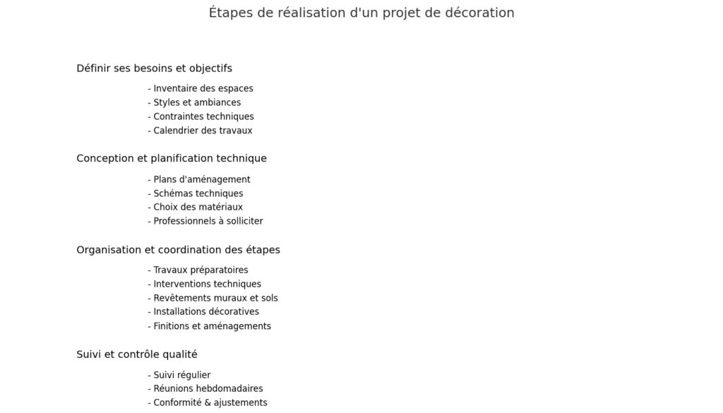 La planification minutieuse d’un projet décoratif permet d’éviter les écueils et de garantir une réalisation harmonieuse. Une démarche structurée, du début à la fin des travaux, constitue le fondement d’une transformation réussie de votre habitat. N’oubliez pas que dénicher son décorateur d’intérieur est une étape clé de cette planification.